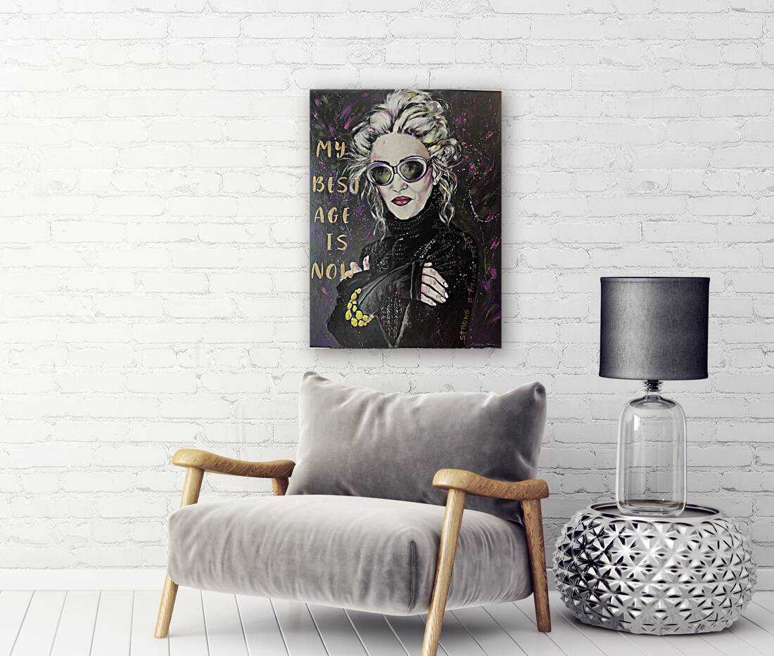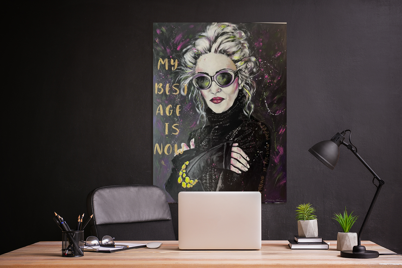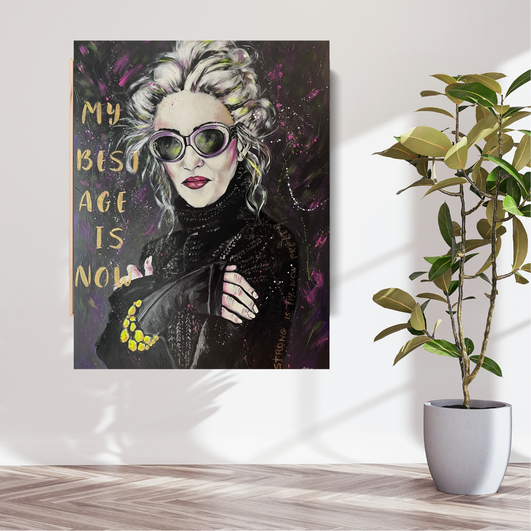 In my painting, I echo the vibrancy of life at any age, portraying an empowered individual who fearlessly declares, "My Best Age Is Now." The splashes of color and dynamic strokes in acrylic embody courage and the refusal to fade into the shadows. This piece champions self-acceptance and celebrates the enduring spirit. It breathes an invigorating, bold energy into any space, encouraging every onlooker to embrace the present moment with confidence and style.